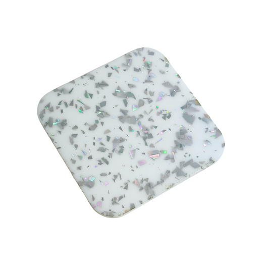 Silver Flakes on White Acrylic